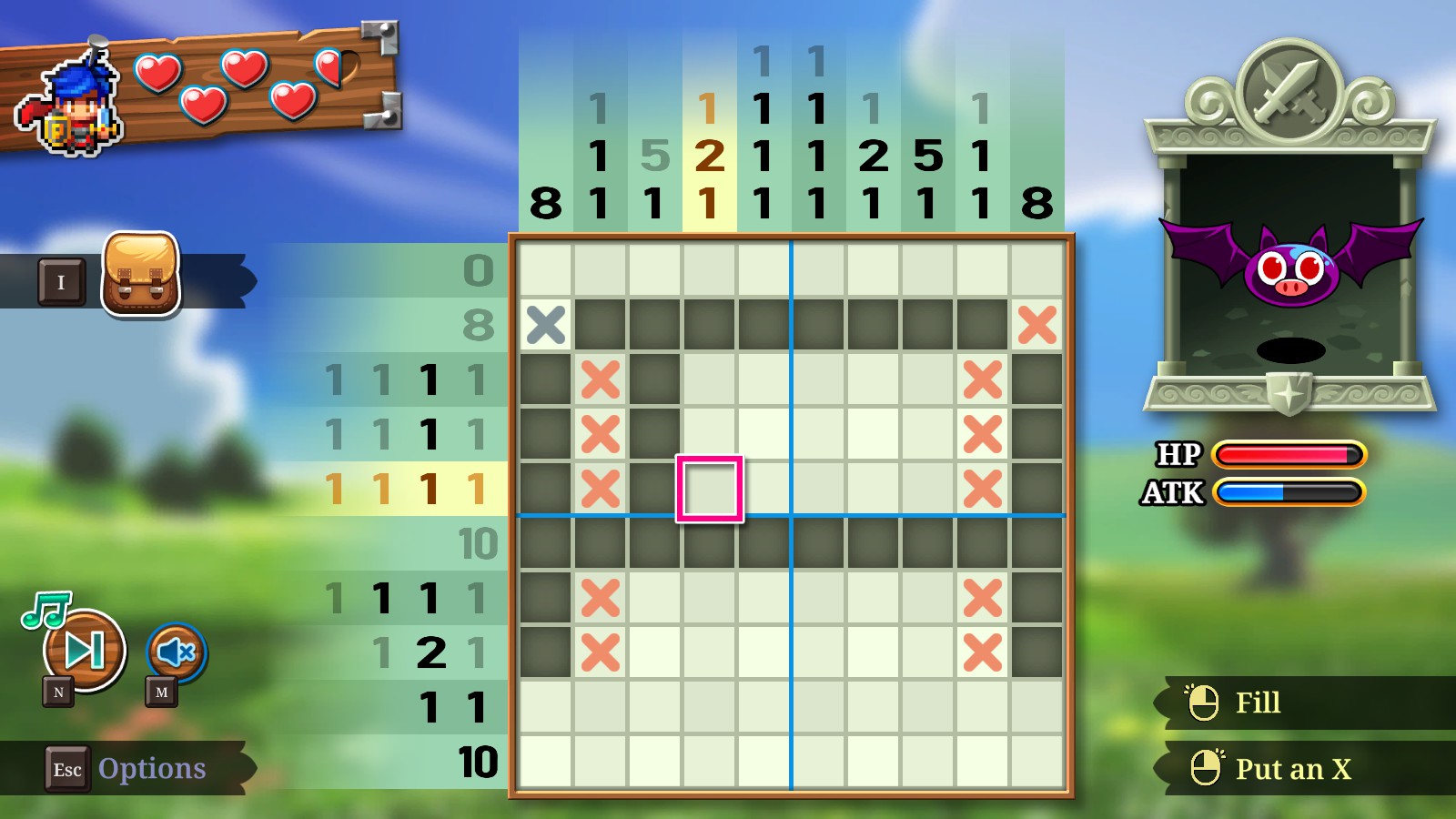 pictoquest_thecursedgrids_3 July 12, 2020 Return to: Game Review: PictoQuest: The Cursed GridsFull resolution (1600 × 900) Image navigation Previous Image Next Image An early game puzzle, showing the enemy in the top right, player health in the top left and the ability to use items.