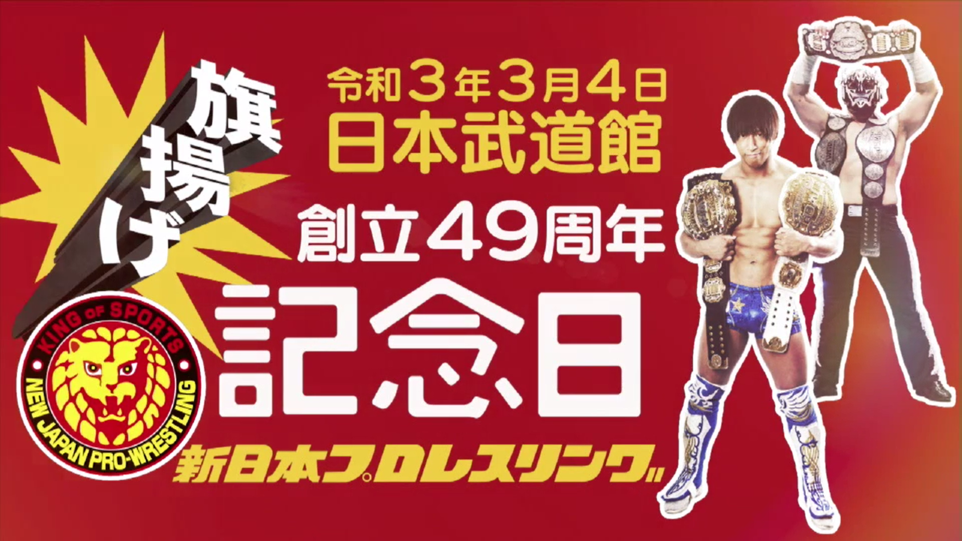 After being forced to miss last year’s event, New Japan Pro Wrestling (NJPW) returns to the Nippon Budokan for its 49th Anniversary event. In the main event, Kota Ibushi will defend the double IWGP Heavyweight and Intercontinental Championships against the new double champion of the junior heavyweight division, El Desperado. El Deperado, the currently reigning IWGP Junir Heavyweight singles and Tag Team Champion (with Yoshinobu Kanemaru) has only faced Ibushi once before, over seven years ago, in a match he lost when Ibushi was the Junior Heavyweight Champion, so the double gold is almost secondary to redemption, and retaliation. The New Japan Cup 2021 also begins on this show, as Tetsuya Naito faces the powerhouse newcomer of the United Empire, Great-O-Khan; while in the other match, the veteran, Satoshi Kojima faces the former Olympian, also a of the United Empire, Jeff Cobb. These three matches plus three huge tag team matches to set up future New Japan Cup 2021 matches tonight, as we celebrate NJPW’s 49th Anniversary.