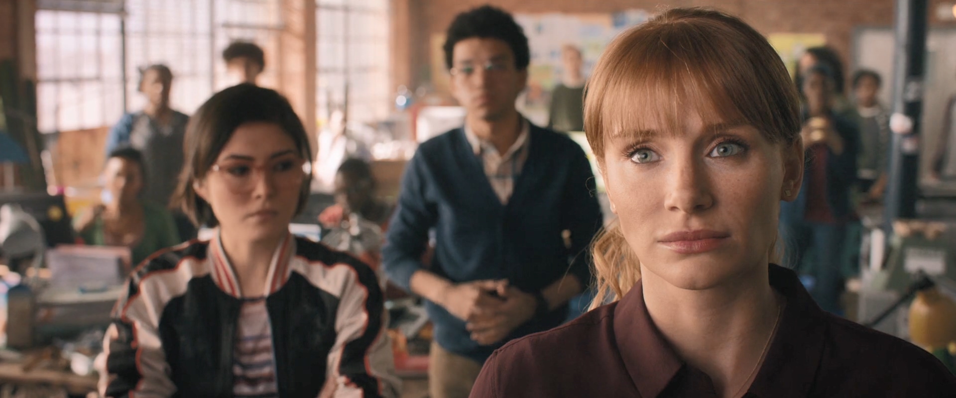 jurassicworld_fallenkingdom_3 October 15, 2018Full resolution (1920 × 800) (From foreground) Claire Dearing (Bryce Dallas Howard), Zia Rodriguez (Danielle Pineda) and Franklin Webb (Justice Smith).